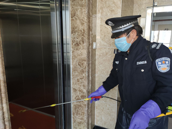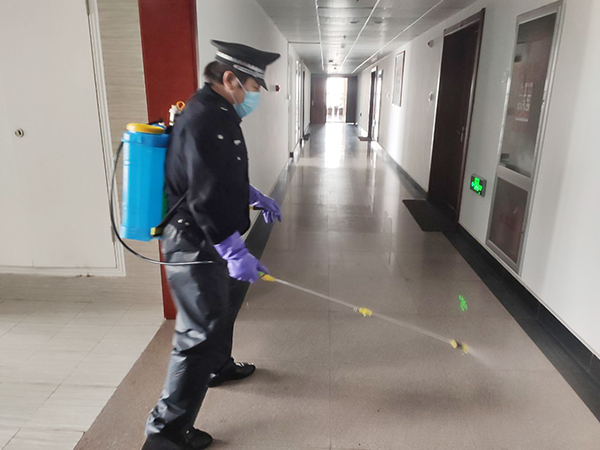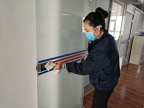 公司為在崗員工發(fā)放了口罩、噴壺、消毒酒精等防護(hù)用品,每日對(duì)各工作場所、班車、車庫、電梯、宿舍等進(jìn)行定點(diǎn)消毒。