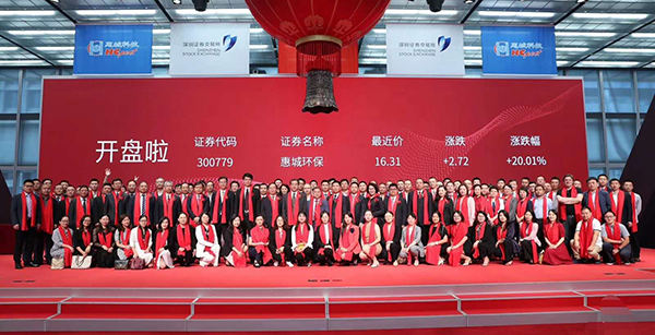 5月22日上午,青島惠城環(huán)??萍脊煞萦邢薰旧鲜袃x式在深圳證券交易所東門8樓大廳正式啟動(dòng)。青島市地方金融監(jiān)管局副局長(zhǎng)王偉光、青島惠城環(huán)??萍脊煞萦邢薰径麻L(zhǎng)張新功、中德證券有限責(zé)任公司首席執(zhí)行官段濤致辭,隨著開市寶鐘的敲響,惠城環(huán)保正式上市。