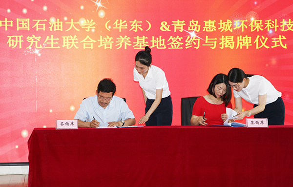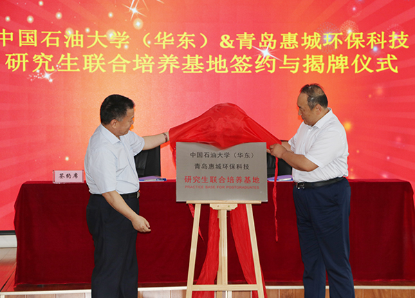 7月15日下午,“中國石油大學(華東)與青島惠城環(huán)保科技研究生聯合培養(yǎng)基地”揭牌儀式在公司研發(fā)中心隆重舉行,中國石油大學(華東)副校長、研究生院院長李兆敏,研究生院常務副院長閻子峰及學校其他領導、老師,我公司董事長張新功、常務副總經理葉紅攜公司核心技術人員及入學石大的學生代表共同出席了此次揭牌儀式。