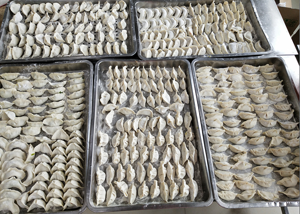 大家齊心協(xié)力,用心包出的餃子如一排排元寶華麗亮相。每一個(gè)餃子都代表對(duì)員工的一份關(guān)愛,一份祝福。