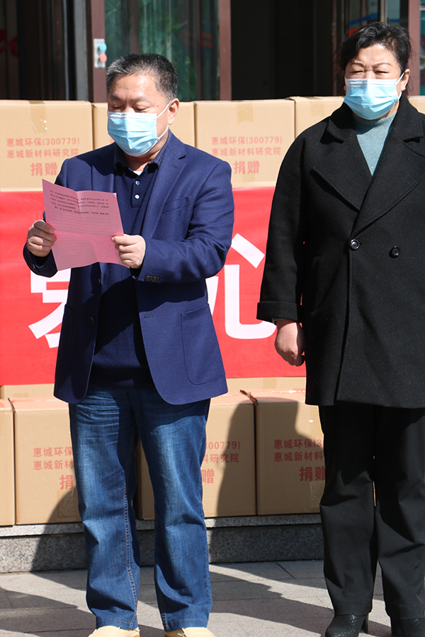 青島市總工會黨組成員,副主席周新國講到,在全市上下眾志成城、抗擊新型肺炎疫情的重要時刻,惠城環(huán)保向湖北地區(qū)捐贈殺菌物資,是企業(yè)積極履行社會責(zé)任、助力疫情防控的一項愛心捐贈公益活動。