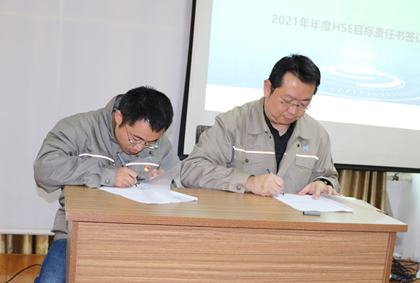 隨后公司總經(jīng)理與生產(chǎn)管理部、HSE管理部,生產(chǎn)管理部與設(shè)備管理部,設(shè)備管理部與維修維保方簽署了年度HSE責(zé)任書(shū)。