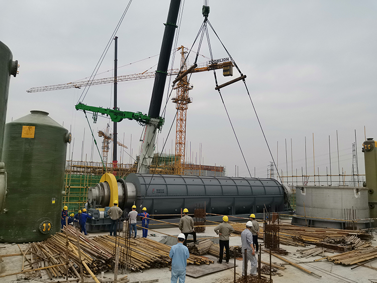 23日上午7點(diǎn),隨著吊裝指揮的一聲令下,焙燒爐開始起吊。在現(xiàn)場所有建設(shè)者的注視下,500噸汽車吊平穩(wěn)提升,至8點(diǎn)37分,焙燒爐順利吊至裂化劑廠房6米層樓板上。