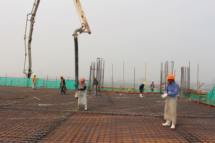 在施工單位的帶領(lǐng)下,公司領(lǐng)導(dǎo)來(lái)到分子篩廠房頂層參觀建設(shè)情況。分子篩廠房建筑面積22308㎡,是整個(gè)項(xiàng)目中面積最大、工程量最大、施工難度最大,設(shè)計(jì)、工藝最復(fù)雜的建筑單體。在臺(tái)風(fēng)、高溫極端天氣及交叉作業(yè)、疫情等諸多不利因素影響下,為加快推進(jìn)建設(shè)進(jìn)程,項(xiàng)目建設(shè)指揮部全體成員放棄節(jié)假日休息,以“5+2”、“白+黑”的戰(zhàn)斗精神,全部深入一線進(jìn)行質(zhì)量檢查和安全督導(dǎo),他們迎難而上、披荊斬棘,是惠城精神的真實(shí)寫(xiě)照;施工單位增加人員、機(jī)械設(shè)備,安排工人三班倒作業(yè),保證施工現(xiàn)場(chǎng)24小時(shí)不停工;監(jiān)理、勘察、造價(jià)等參建單位加班加點(diǎn),“隨叫隨到,不叫也到”......各方精誠(chéng)合作,共同推進(jìn),終于迎來(lái)了8月10日這一封頂時(shí)刻。