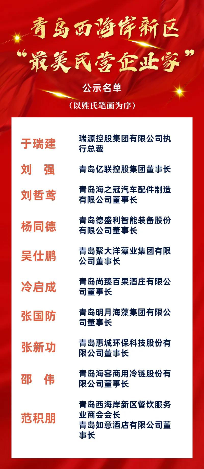 近日,工委區(qū)委統(tǒng)戰(zhàn)部、工委區(qū)委宣傳部、區(qū)工商業(yè)聯(lián)合會(區(qū)民營經(jīng)濟發(fā)展局)聯(lián)合開展青島西海岸新區(qū)“最美民營企業(yè)家”評選活動。經(jīng)過廣泛宣傳發(fā)動、優(yōu)秀典型推薦、綜合評價、聯(lián)合評分等程序,評選出10名青島西海岸新區(qū)“最美民營企業(yè)家”,青島惠城環(huán)??萍脊煞萦邢薰径麻L、總經(jīng)理張新功入選。