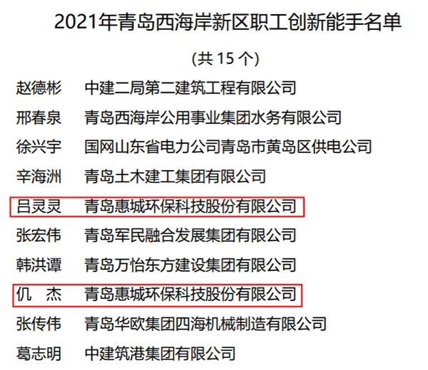近日,青島西海岸新區(qū)總工會發(fā)布通知,公布“2021年度青島西海岸新區(qū)創(chuàng)新型班組、職工創(chuàng)新能手、職工創(chuàng)新成果”評選情況,公司工程技術研究中心榮獲新區(qū)創(chuàng)新型班組殊榮,該部門副主任呂靈靈、副主任工程師仉杰當選新區(qū)職工創(chuàng)新能手。