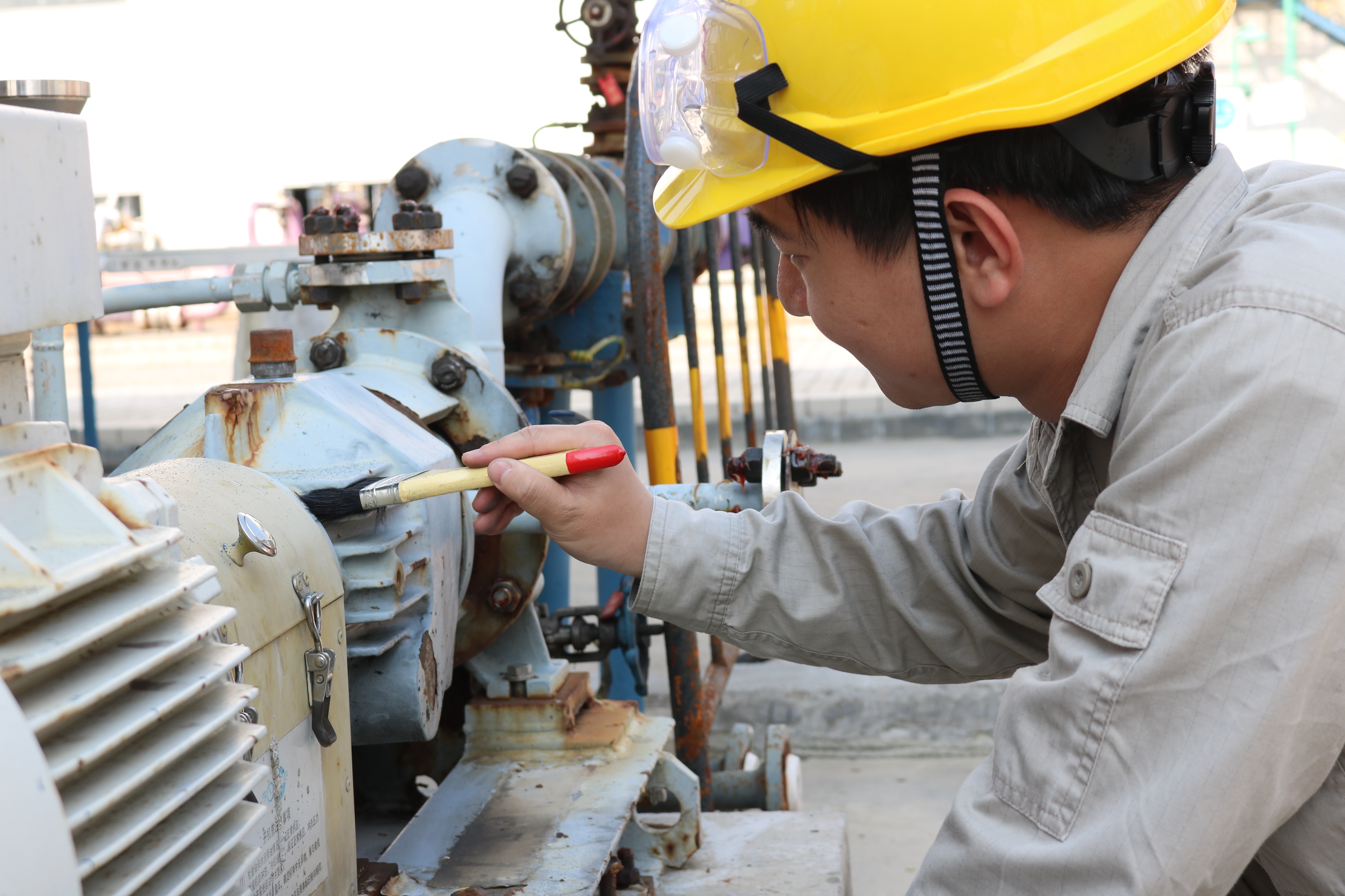 生產(chǎn)運(yùn)行一部儲運(yùn)車間主管陳奕良注意到現(xiàn)場機(jī)泵小縫隙存在污跡、油漬且較難清理,他嘗試將重油污清洗液、洗潔精和洗衣粉加水調(diào)和后,根據(jù)機(jī)泵縫隙大小搭配使用牙刷、毛刷、鋼刷,俯下身仔細(xì)清潔每一個小角落里的污漬,除油污效果明顯,于是他將這個方法從儲運(yùn)車間推廣到其他車間,廠區(qū)機(jī)泵煥然一新。