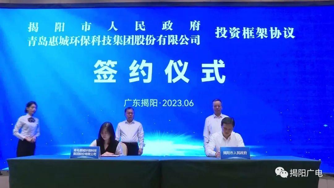 6月18日,揭陽市人民政府與青島惠城環(huán)??萍技瘓F(tuán)股份有限公司在揭陽市區(qū)簽署投資框架協(xié)議。[ 查看更多 ]