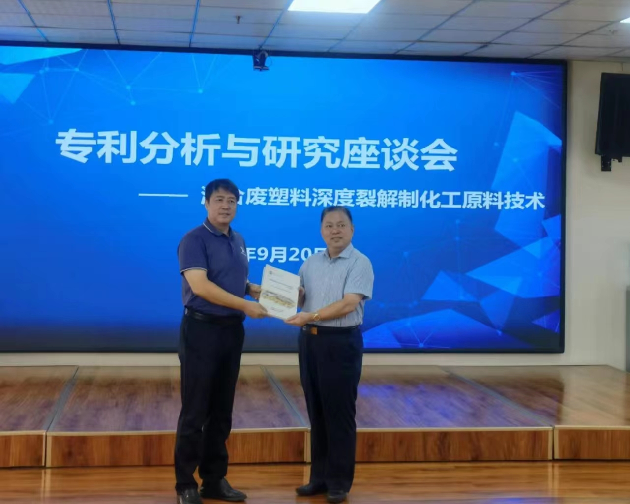9月20日下午,中國(guó)石油大學(xué)(華東)圖書(shū)館領(lǐng)導(dǎo)一行蒞臨公司舉辦了“混合廢塑料深度裂解制化工原料”專利分析與研究報(bào)告交接儀式及項(xiàng)目座談會(huì)。中國(guó)石油大學(xué)(華東)圖書(shū)館黨委書(shū)記李國(guó)、副館長(zhǎng)郭成,公司創(chuàng)始人張新功、總經(jīng)理林瀚,中國(guó)石油大學(xué)(華東)項(xiàng)目組成員,及惠城環(huán)保相關(guān)技術(shù)研發(fā)人員參加了本次會(huì)議。[ 查看更多 ]
